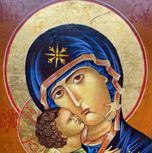 Icons of any size written in Egg Tempera medium, using natural pigments, applying Gold and guiding, on a wooden board prepared in a traditional long-lasting way.